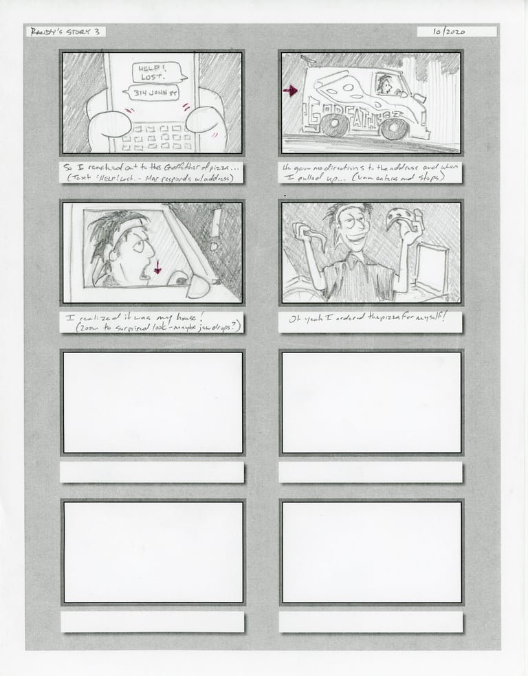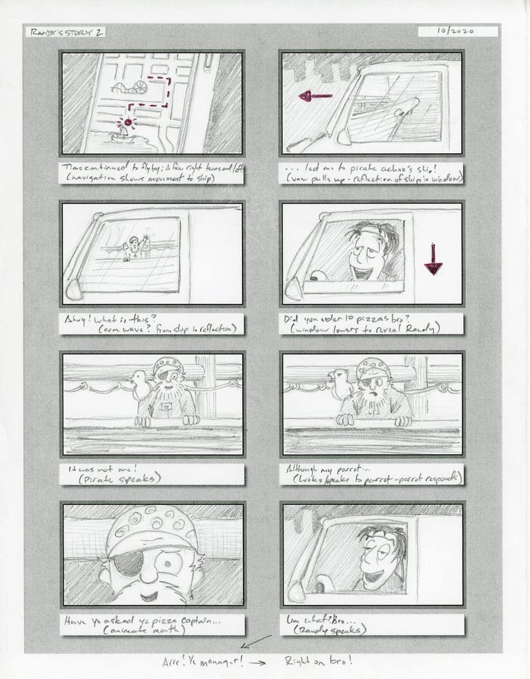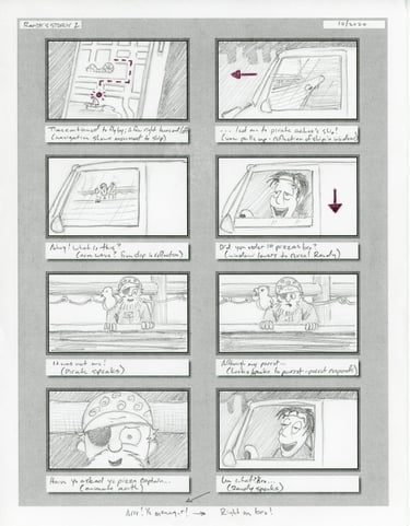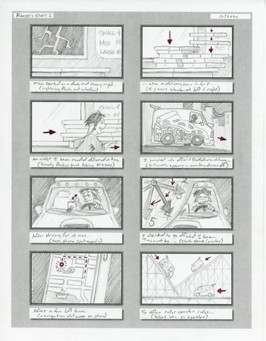 Script driven storyboard designs and storyline creation. Visualize and drive visual story and prepare animation element design with minimal character movement in order to animate stills and still provide an entertaining story.